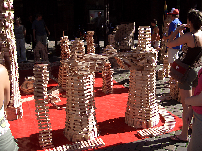 Während des Spielmarkts in Remscheid 2014 hat Heike Schwarz u.a. einen workshop zu Großgruppenspielen ohne Material durchgeführt. 42 Teilnehmer/innen spielten begeistert mit. Aber die Spiele funktionieren auch mit 100 Mitspielern.