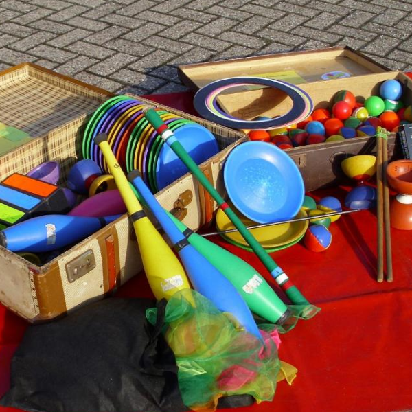 Im Ausleihprogramm des Spielefanten gibt es umfangreiches Jongliermaterial: